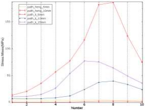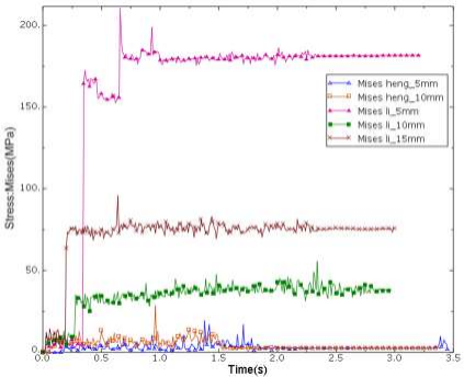 2.对各个工况进行应力值排序,从高到底大致为li_5mm 、li_15mm、li_10mm、heng_10mm、heng_5mm。其中可以看出立铣的应力大幅大于横铣(即卧铣)的应力。
