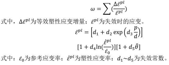 材料的失效准则,选用 johnson-cook 剪切失效准则,失效参数��的定义为: