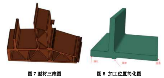 由于型材结构比较复杂,选取关键部位进行建模,在相应边界施加等效约束。如图7和图8所示。