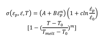 刀具材料为硬质合金钢,定义为刚体。型材铝合金为6005a,采用johnson-cook本构,以模拟材料在高应变速率下的应变硬化,应变速率硬化和热软化效应,其本构方程为: