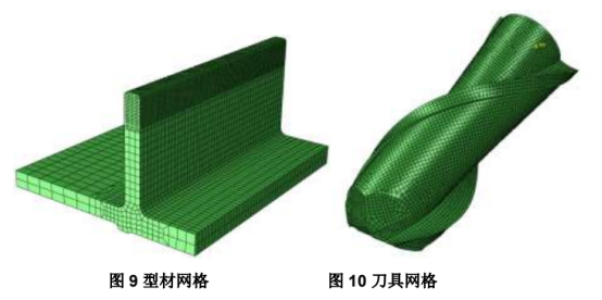 分别对型材和刀具进行网格划分。其中型材采用c3d8r单元,共划分29650个单元。刀具采取刚体单元。如图9,图10所示