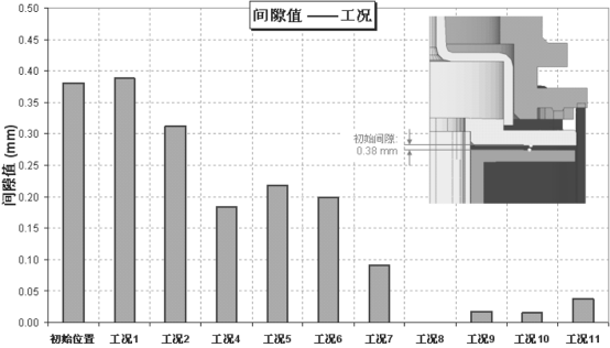 各工况下的装配间隙值如图 10 所示,我们可以清楚地了解到装配过程中关键零件间隙的变化情况。
