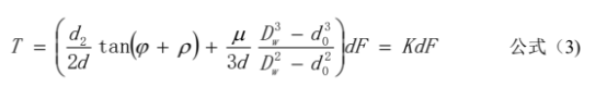 在工程应用中,扭矩-预紧力关系常用公式(3)进行计算: