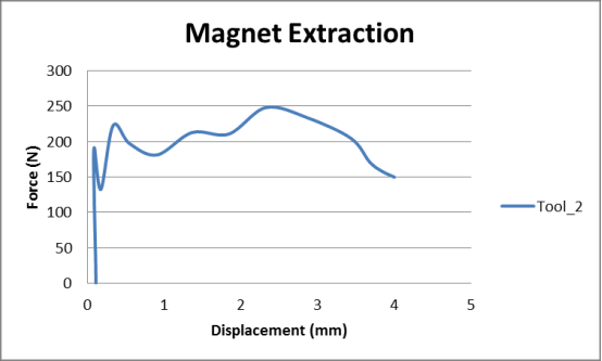 图6显示了为磁体抽出而绘制的力 vs位移图表。该图表有助于找出由一组参数组合实现的填隙效果。
