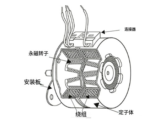 图1展示的是永磁电机,或称“pm”电机。转子内包含永磁体,这也是pm电机得名的原因。永磁步进电机的运行原理与混合电机相同,但采用了略有不同的几何设计,pm转子的磁极是径向磁化的,南北极沿着转子的圆周交替分布。pm电机的转子和定子组件都是光滑的。永磁体价格高昂,因为它们含有稀土金属,如和,而这些稀土金属主要产自中国。随着对这些材料需求的增加,其价格也将随之上涨。