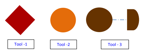 图3展示了用于填隙的不同工具几何形状(横截面)。第一个工具是金字塔形,第二个工具是圆形,第三个工具也是圆形但边缘经过平滑处理。每种工具都对填隙过程有着各自的影响。为了达到最佳的填隙效果,需要确定这三款工具中最好的一款。