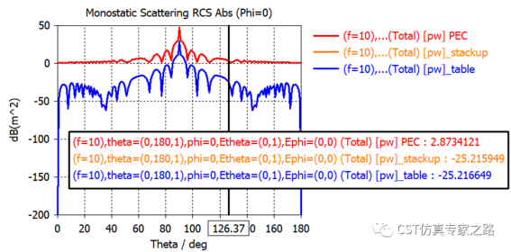 对比结果,有损的介质材料比pec反射要小很多: