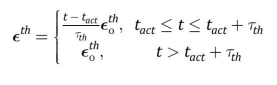 其中eth是所施加的热应变et“是激活元素的增量末尾的热应变值,tact是激活时间,r是用户指定的扩展时间常数。r的默认值是初始时间增量的2倍。指定t=0导致立即施加热应变。