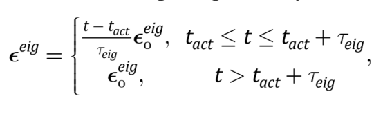 其中eeig是应用的本征应变,eeig是在元素被激活的增量开始时的本征应变值,tact是激活时间,feig是用户指定的时间常数。teig的默认值为零。